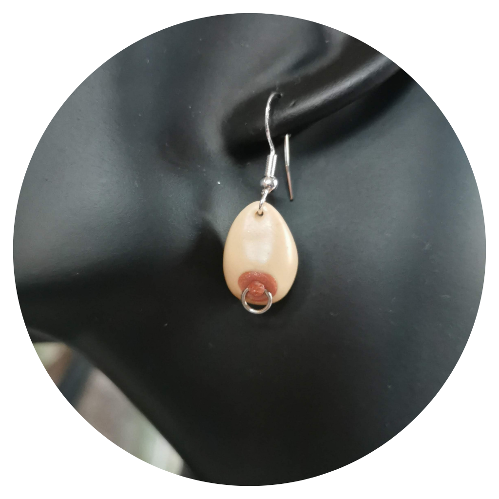 Un sein à une fonction nutritive pour un nourrisson. Il est malheureusement hyper sexualisé et doit répondre à des normes de forme, de taille, etc… Porter des boucles de seins différentes c’est une manière de montrer que la poitrine des femmes n’est pas un produit sexuel mais des courbes merveilleuses dessinées par leurs histoires, leurs allaitements, leurs vécus. C’est aussi montrer que, quel qu’il soit :